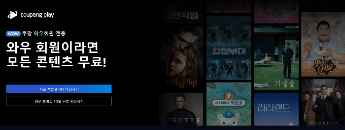 쿠팡 플레이는 쿠팡 와우 멤버십에 가입한 경우 와우 회원 분들에게 제공되는 무료 혜택입니다.
