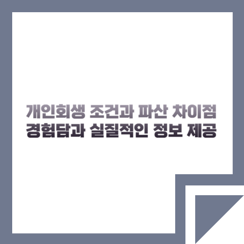 - 향후 신용 관리: 파산 기록은 신용 점수에 큰 영향을 미치며, 개인회생 역시 변제 기간 동안 신용 관리가 중요합니다.