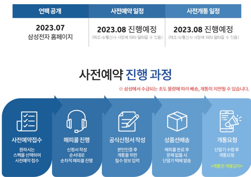 갤럭시 z폴드 5의 경우에도 사전예약은 언팩 행사 이후에 시작됩니다.