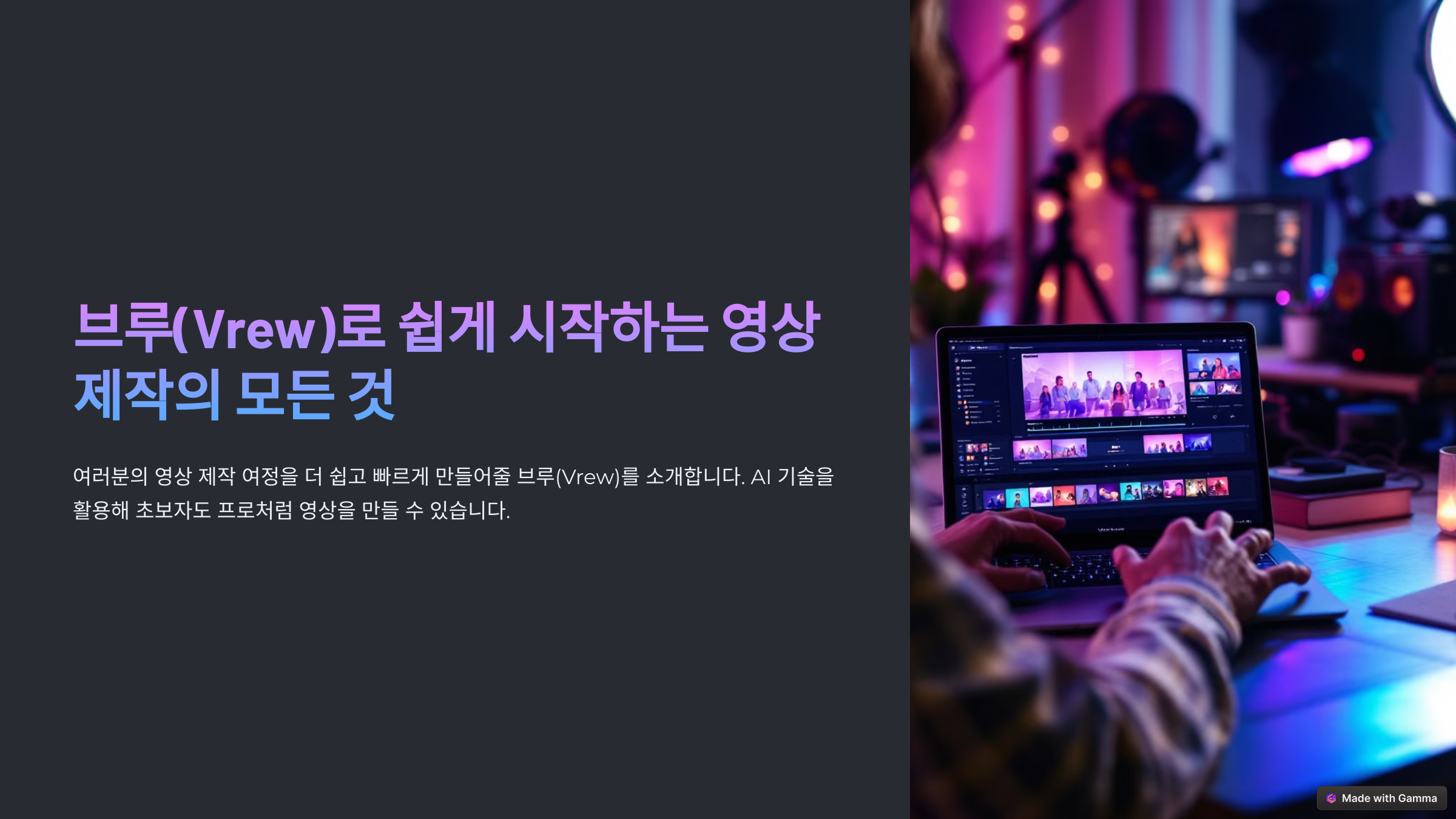 **브루(Vrew)**는 AI 기술을 활용한 무료 영상 편집 프로그램으로, 자동 자막 생성과 텍스트 기반 편집 기능을 제공하는 것이 가장 큰 특징입니다.