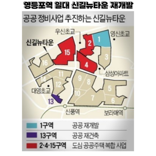 - 정비구역 지정: 신길1구역은 이미 정비구역으로 지정되어 재개발이 확정된 상태입니다. 이는 해당 지역이 노후화되었으며, 재개발을 통해 주거 환경을 개선할 필요가 있다는 점이 인정되었음을 의미합니다.