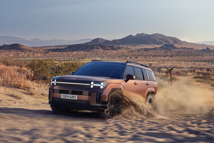 신형 싼타페의 외관은 박시한 형태의 강인한 이미지를 바탕으로 긴 휠베이스와 넓은 테일게이트에서 비롯된 유니크한 실루엣이 강렬한 존재감을 드러냅니다.