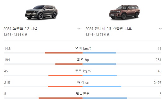| 구분 | 싼타페 | 쏘렌토 |