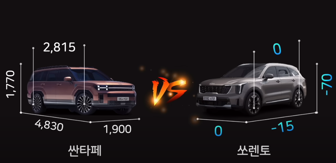쏘렌토 vs싼타페 크기 비교