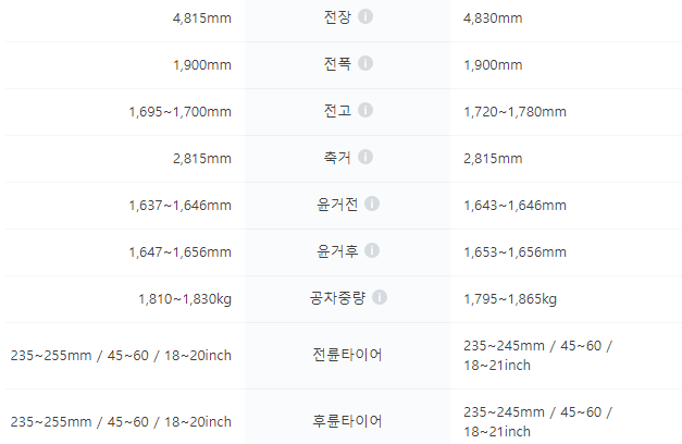 2.5 익스클루시브 프레스티지 2.5 프레스티지 노블레스 2.5 캘리그래피 시그니처 1.6 하이브리드 익스클루시브 프레스티지 1.6 하이브리드프레스티지 노블레스 1.6 하이브리드캘리그래피 시그니처 1.6 하이브리드 AWD 익스클루시브 프레스티지 1.6 하이브리드 AWD 프레스티지 노블레스 1.6 하이브리드 AWD캘리그래피 시그니처