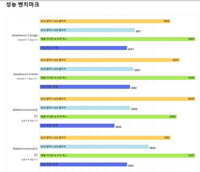 | 갤럭시 S23 | 1566 | 5134 |