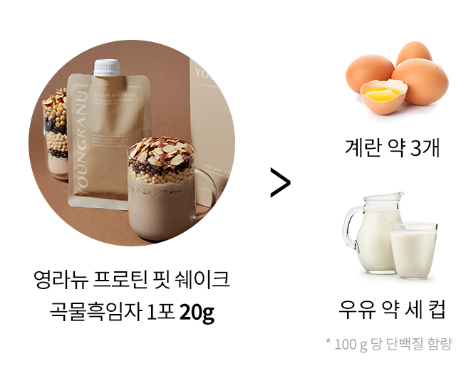 영라뉴 쉐이크 단백질 1포에 20g 단백질 포함