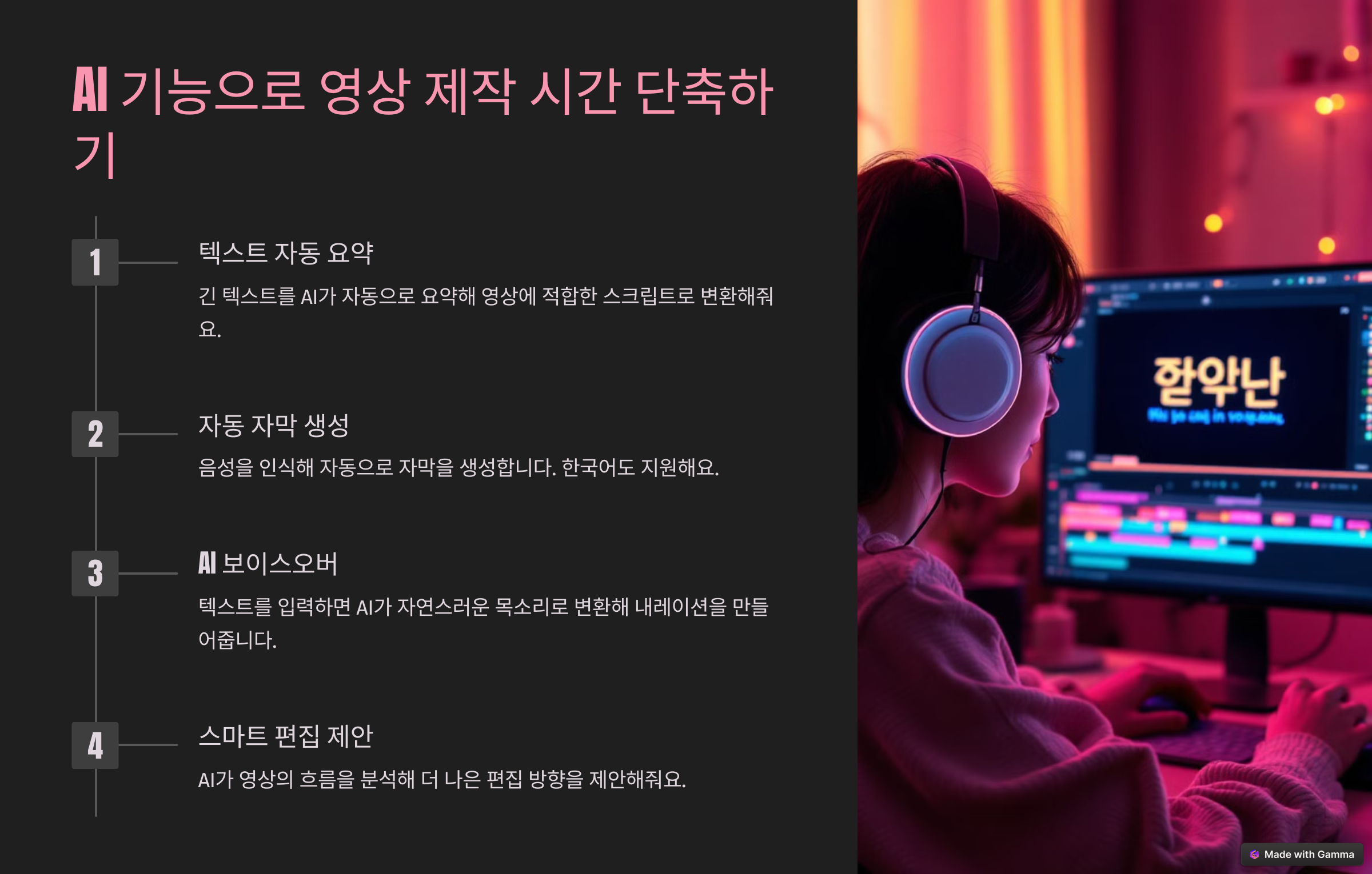 ✅ AI 기반 자동 편집 기능 – 텍스트 입력만으로 자동 영상 생성