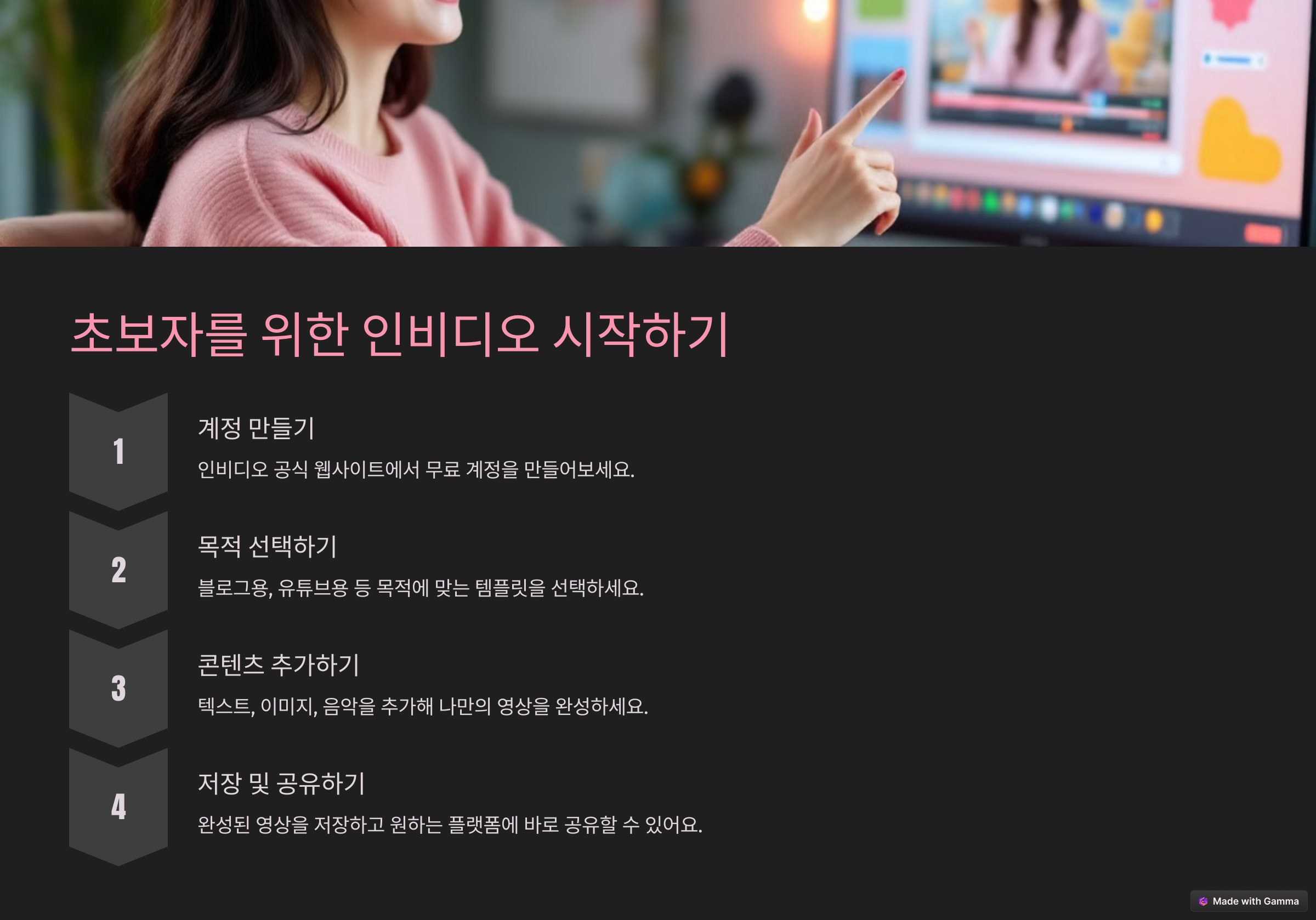 자, 이제 AI 영상 제작을 쉽고 빠르게 할 수 있는 인비디오의 기본 사용법을 알아볼까요? 😊