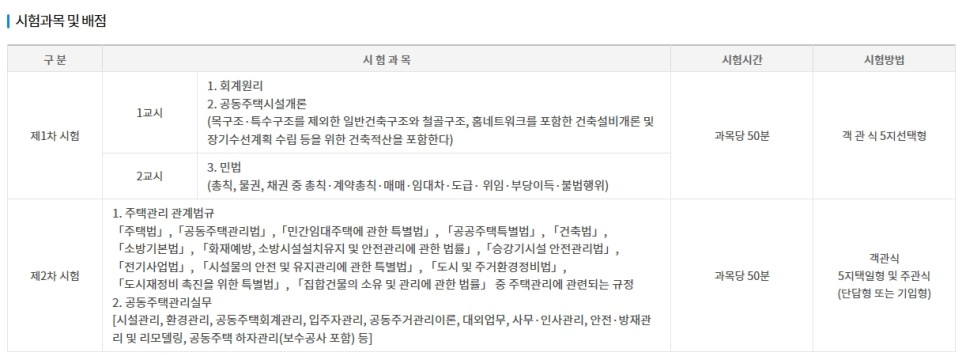 | 구 분 | 제1차 시험 | 제2차 시험 |