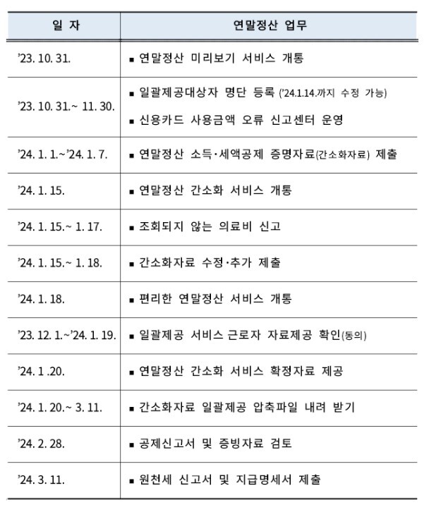 그래서 오늘은 연말정산 일정과 국세청 홈택스를 이용한 연말정산 미리 보기 및 따라 하기에 대하여 정리해 보았습니다.