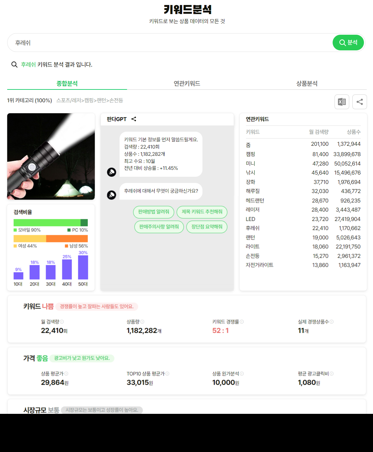 셀러와 블로거를 위한 데이터 분석이 가능합니다.