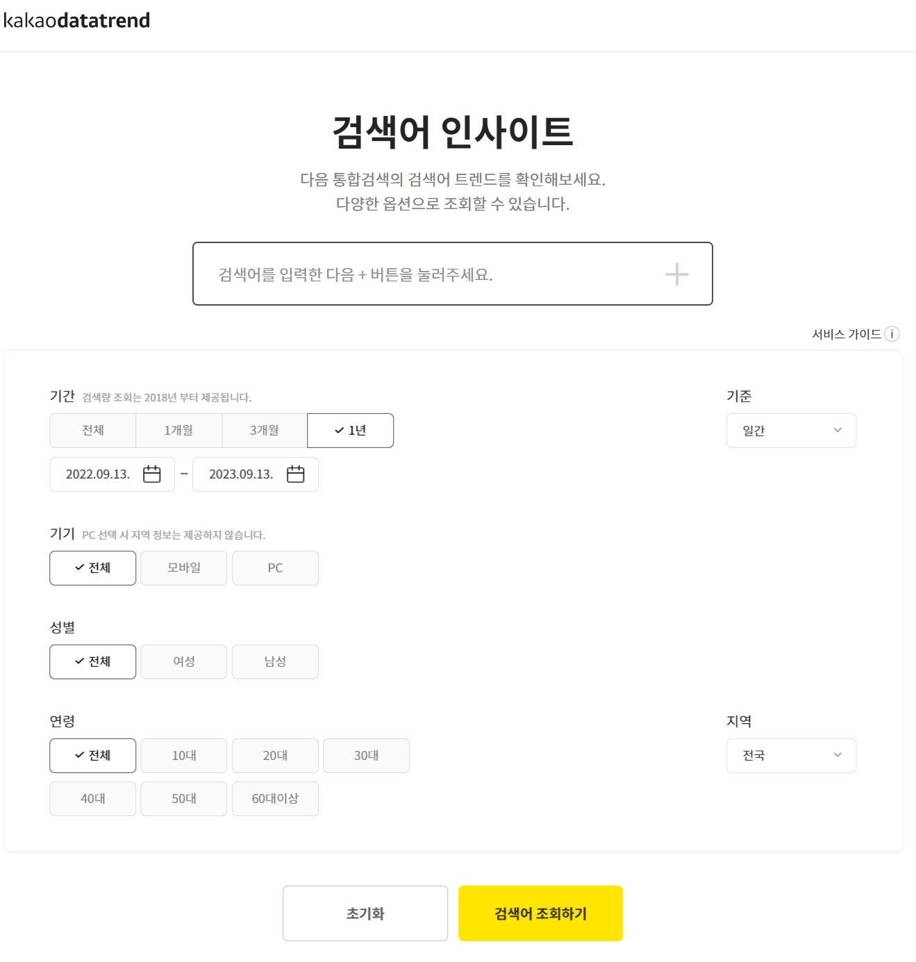 다음 기반 검색 트렌드 분석 - 카카오키워드마스터