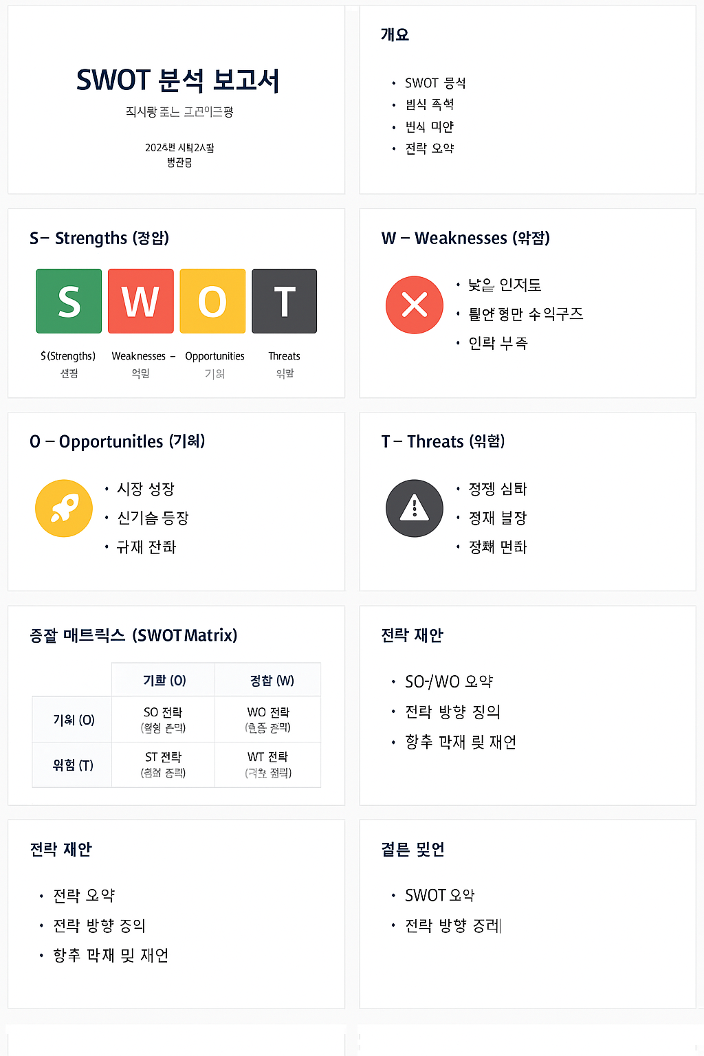 SWOT 분석 PPT 템플릿 예시