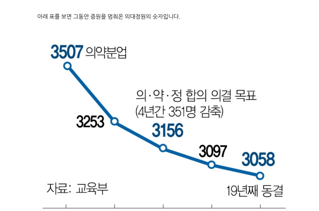 대학 신입생도 적고 인구도 점점 줄어가는 나라에서 별다른 대책 없이 의사수를 한 번에 많이 늘리는 것은 무리가 있다고 합니다. 그리고 의료계의 질저하를 초래하지 않을까 싶긴 하네요 내년부터 매년 2000~3000명씩 늘리면 의대에 실습을 할 여건이 안되고 그 인원을 수용할만한 공간이나 교수도 없을 텐데 걱정이긴 합니다.