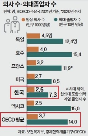 의사 수 OECD 꼴찌서 2번째