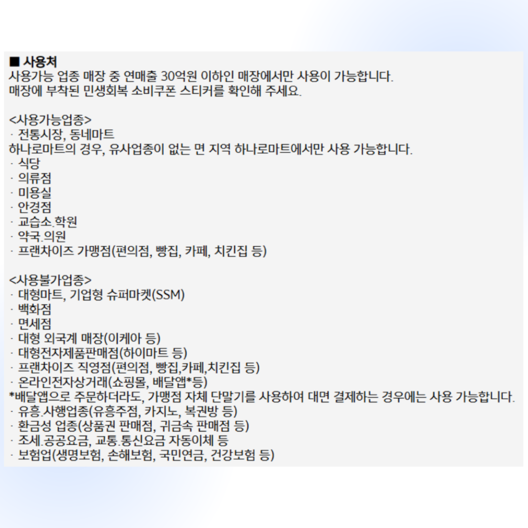 - 거주 지역 내에서만 사용할 수 있는 상품권으로, 지역경제 활성화에 기여할 수 있는 방식입니다.