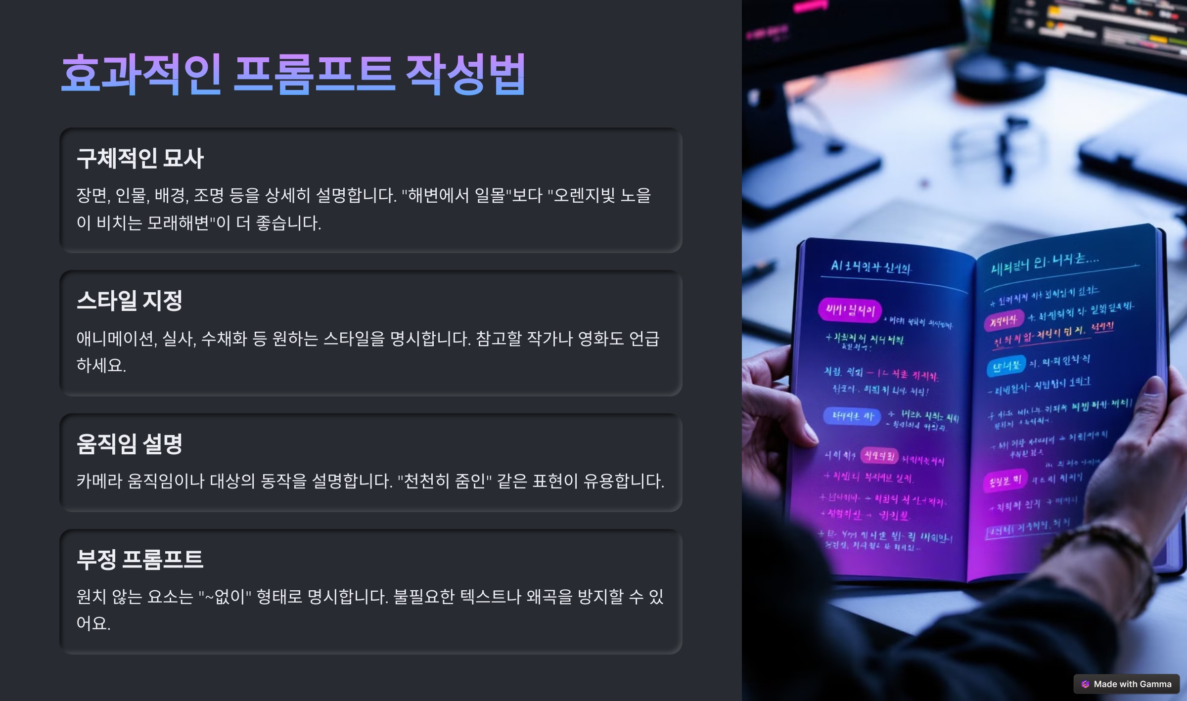 - 텍스트 프롬프트 작성 연습: AI가 이해하기 쉬운 문장을 작성하는 것이 중요