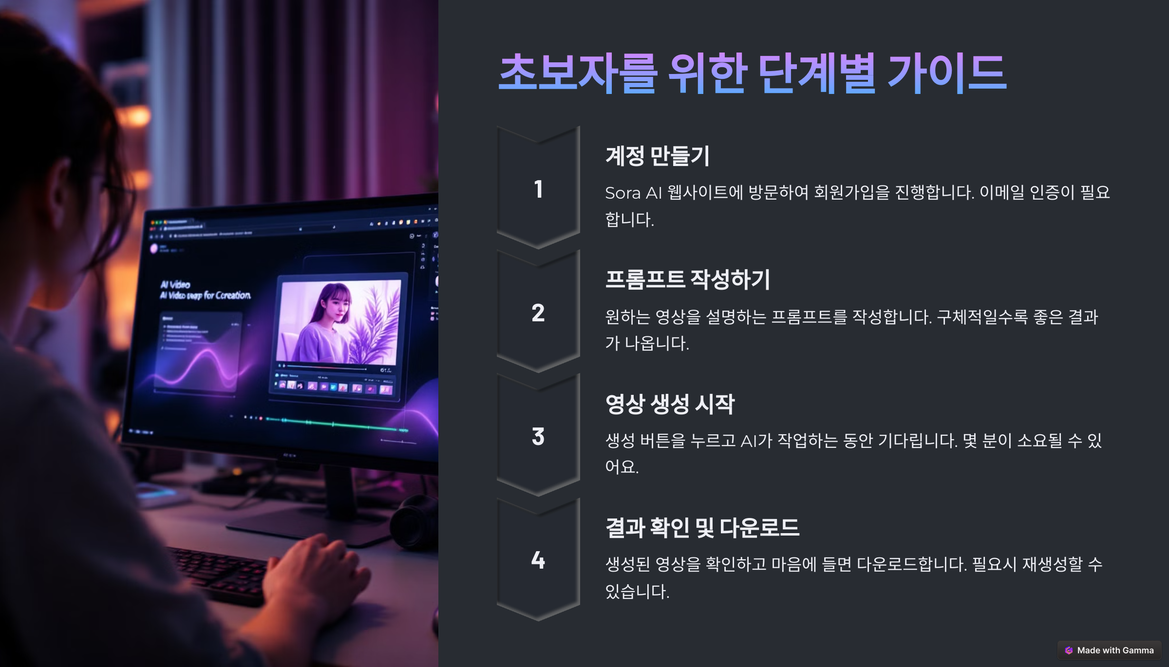 지금부터 Sora AI를 활용하여 쉽고 빠르게 고퀄리티 영상을 만드는 방법을 알아보겠습니다! 😊