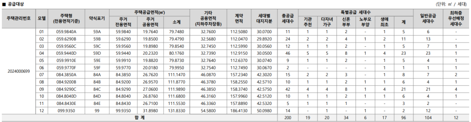 - 일반분양 200세대: 특별공급 96세대, 일반공급 104세대