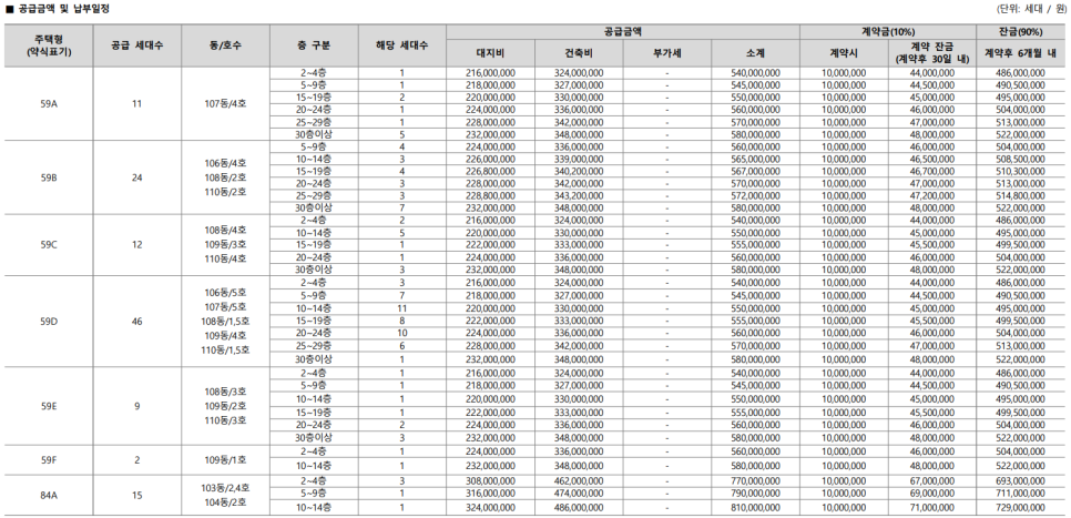 | 84A | 7억 7,000만 ~ 8억 5,000만 |